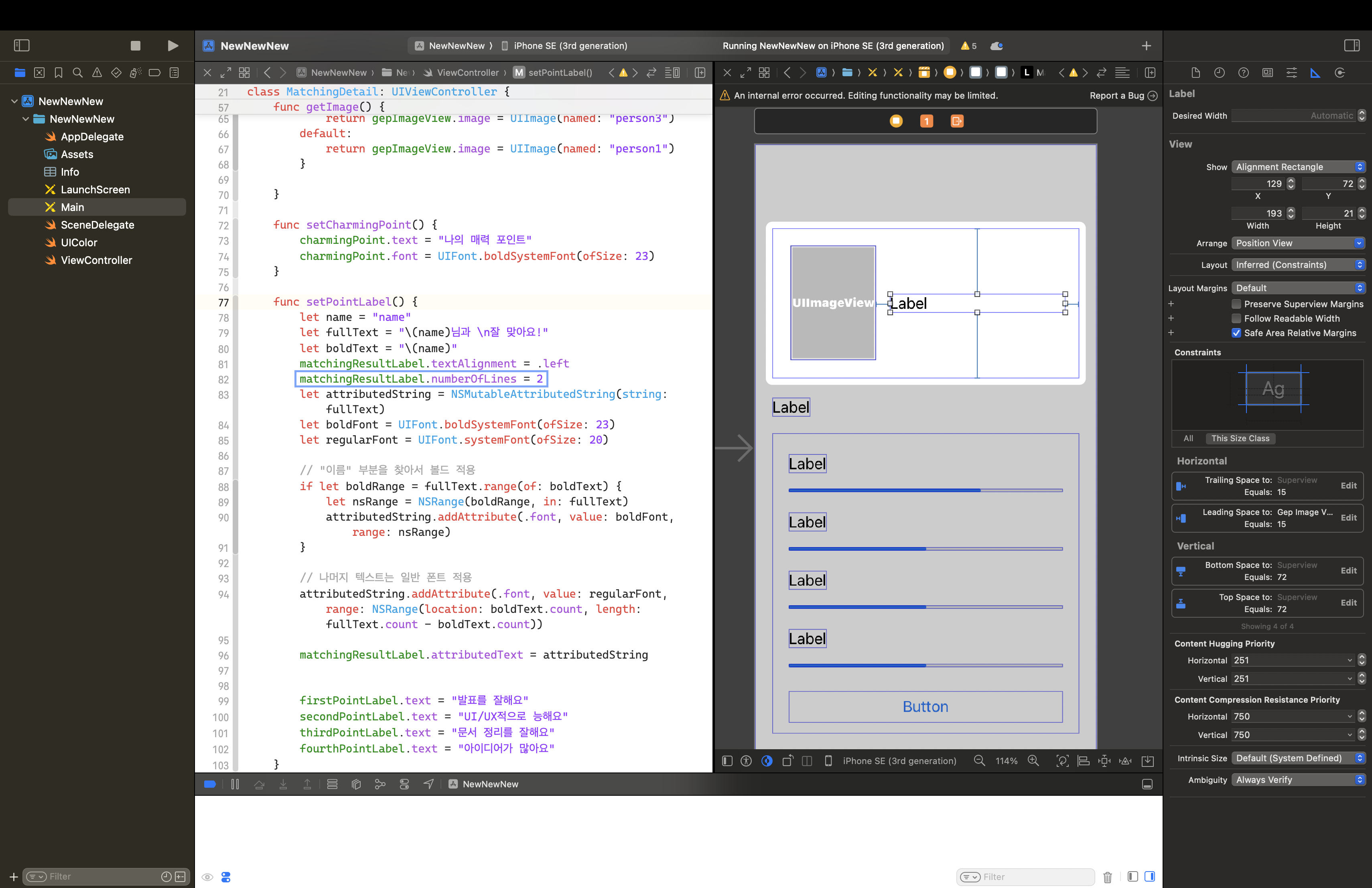 다시 말하자면, 위 아래의 제약을 추가하면서 Label의 높이가 정해졌는데