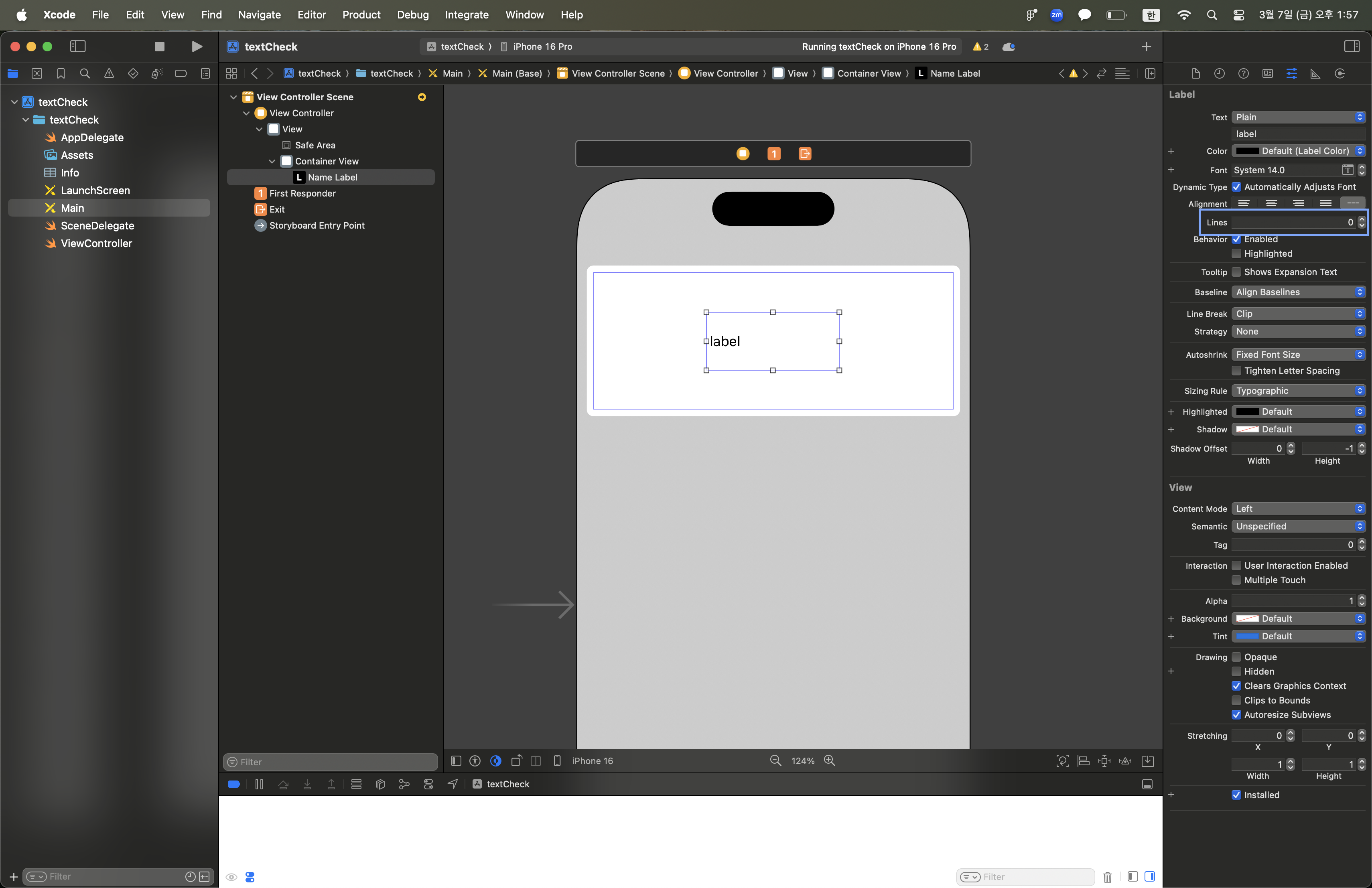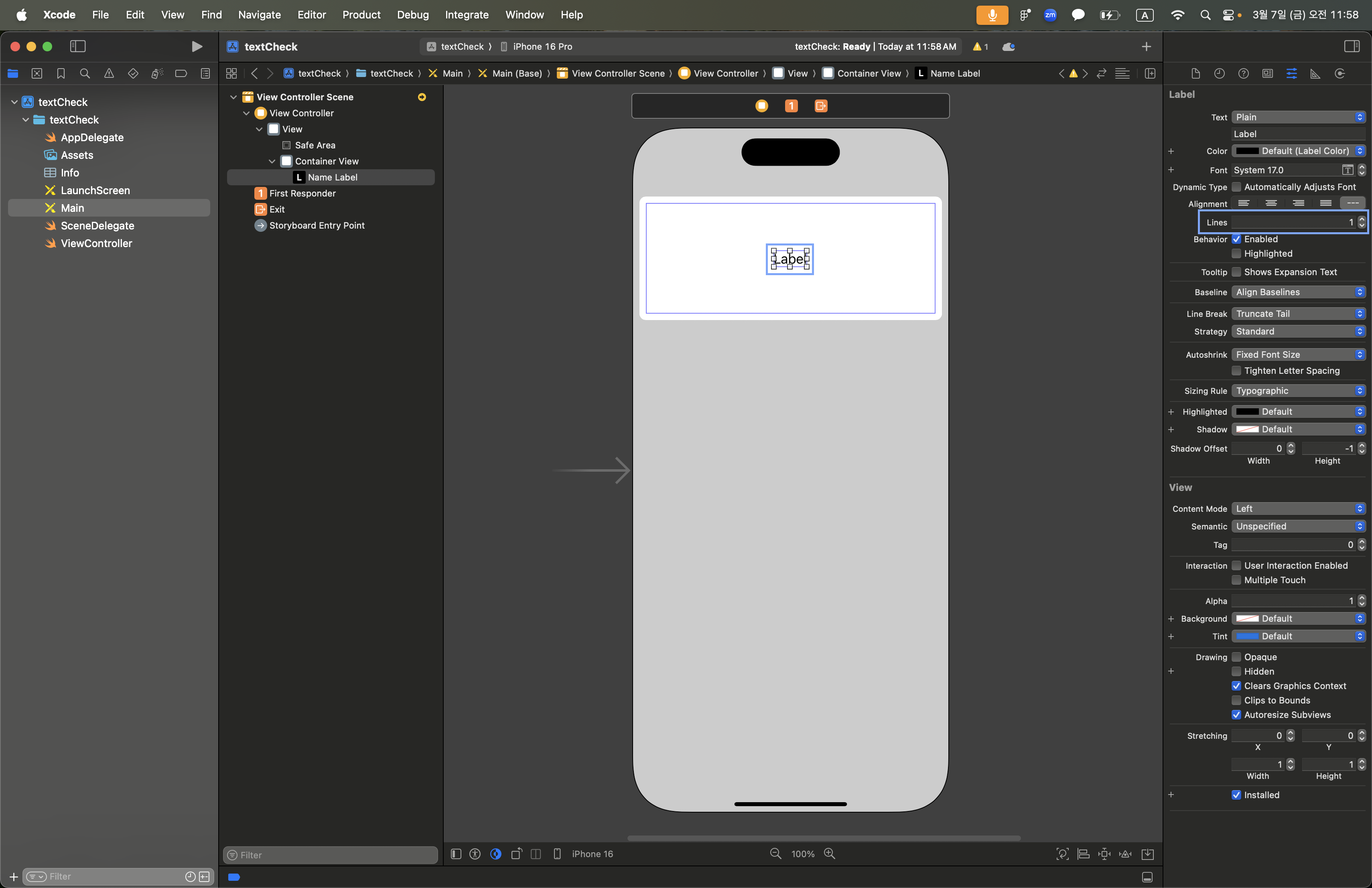 1. 스토리보드에 Label Inspector에 접근해서 Lines의 개수 수정