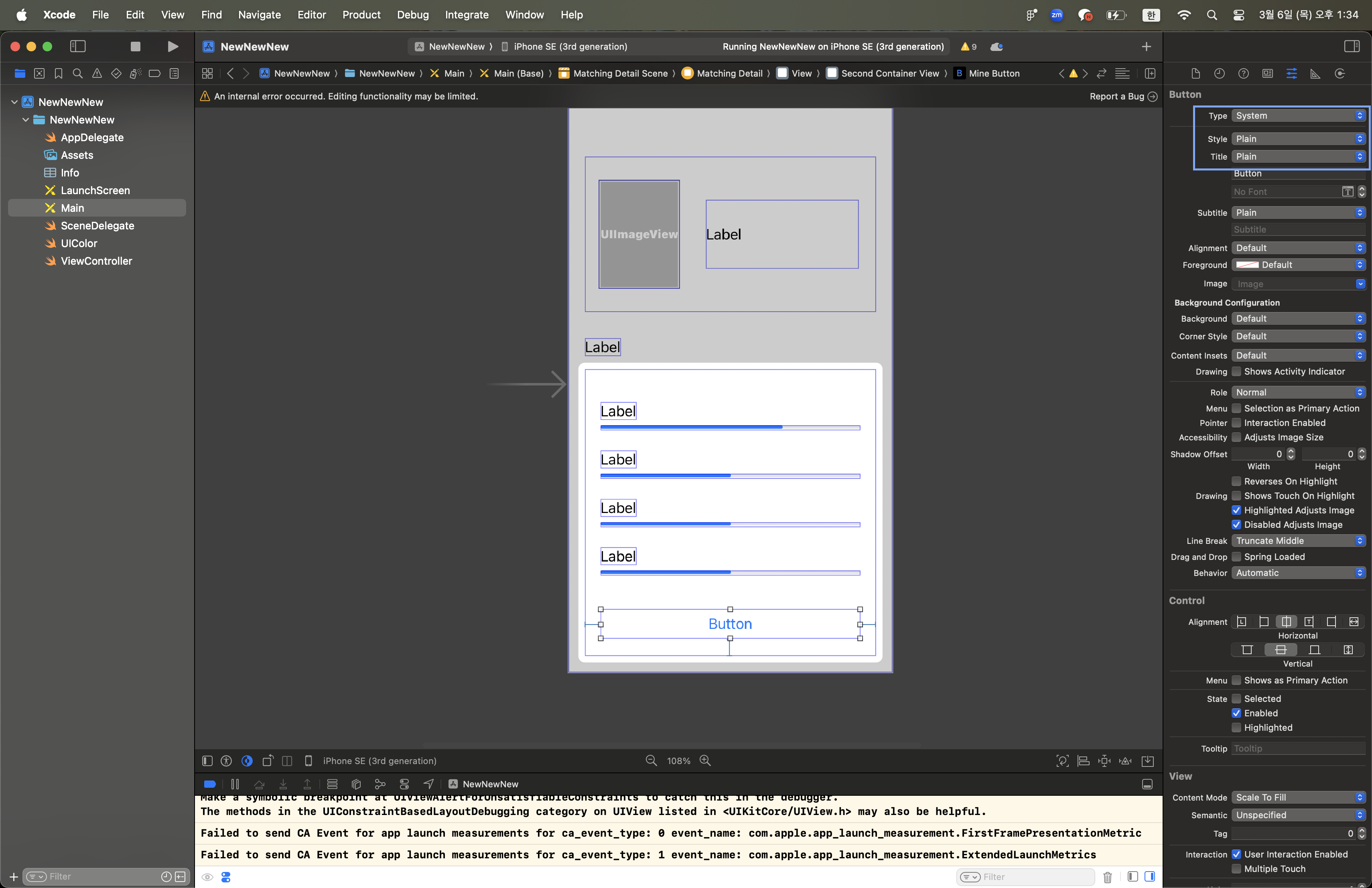 1. StoryBoard 상의 Button의 인스펙터 창을 확인해보자
