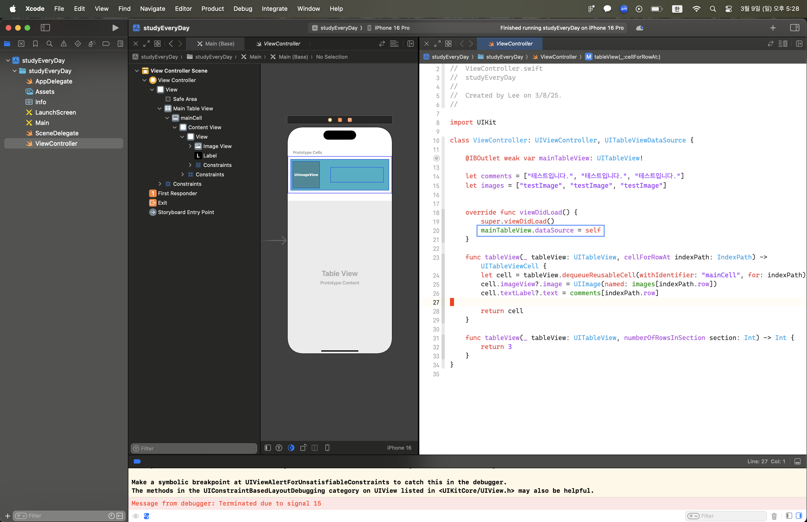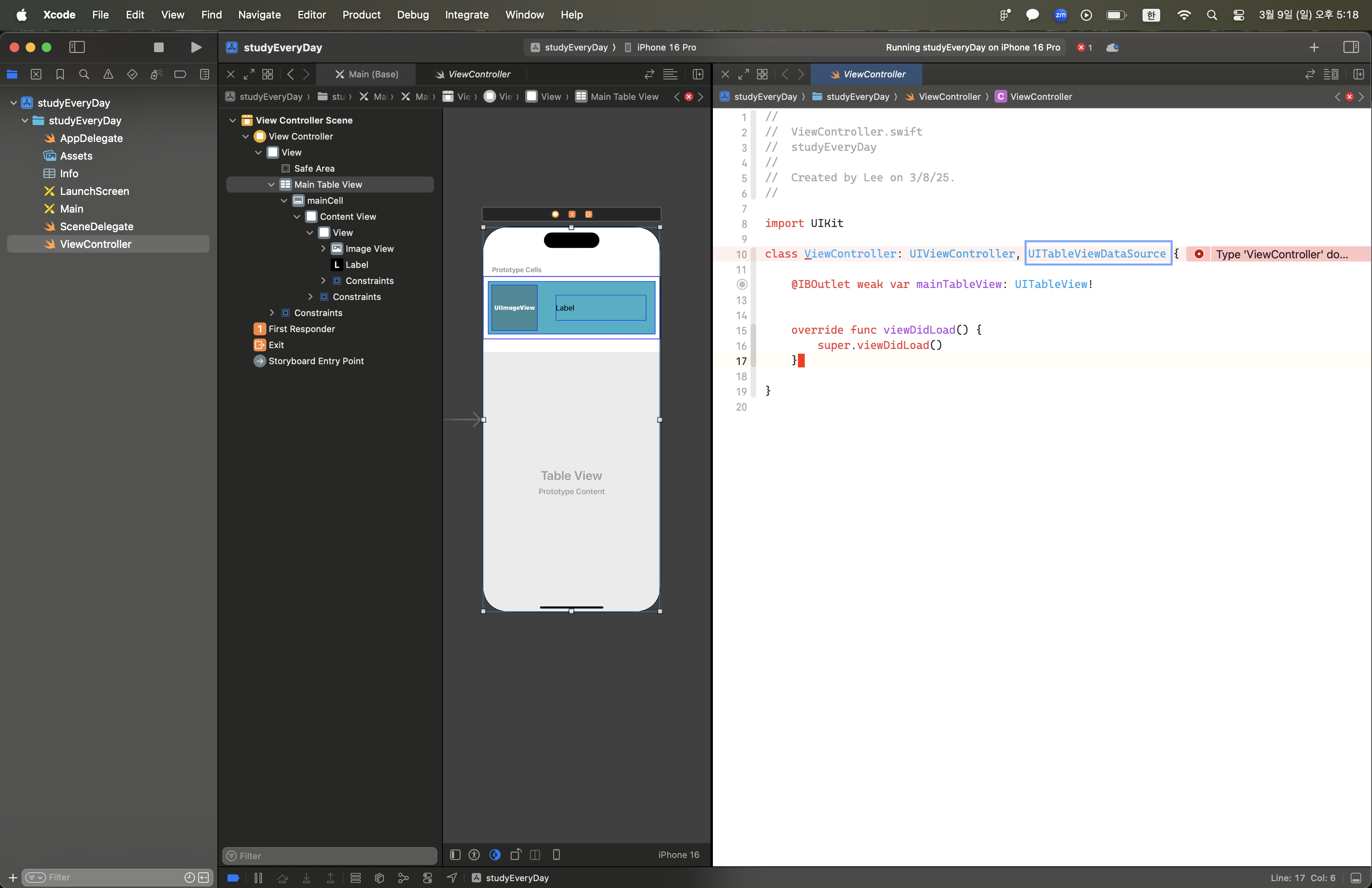 5. mainTableView의 dataSource를 참고할 수 있도록 코드 추가