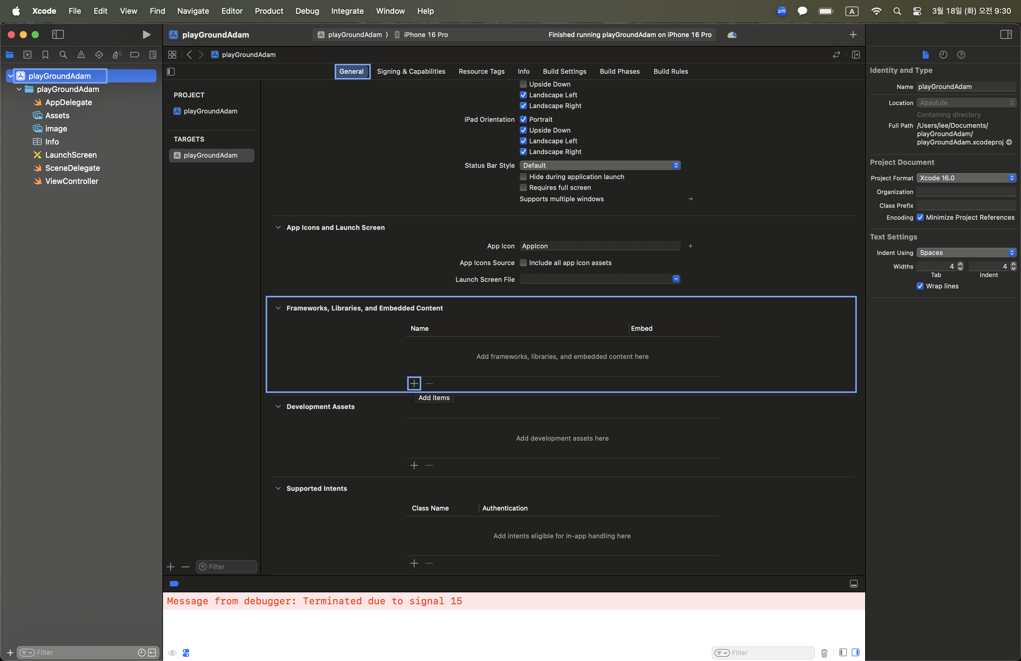 1. Project > General > Framework, Libraries > (+) 버튼 누르기