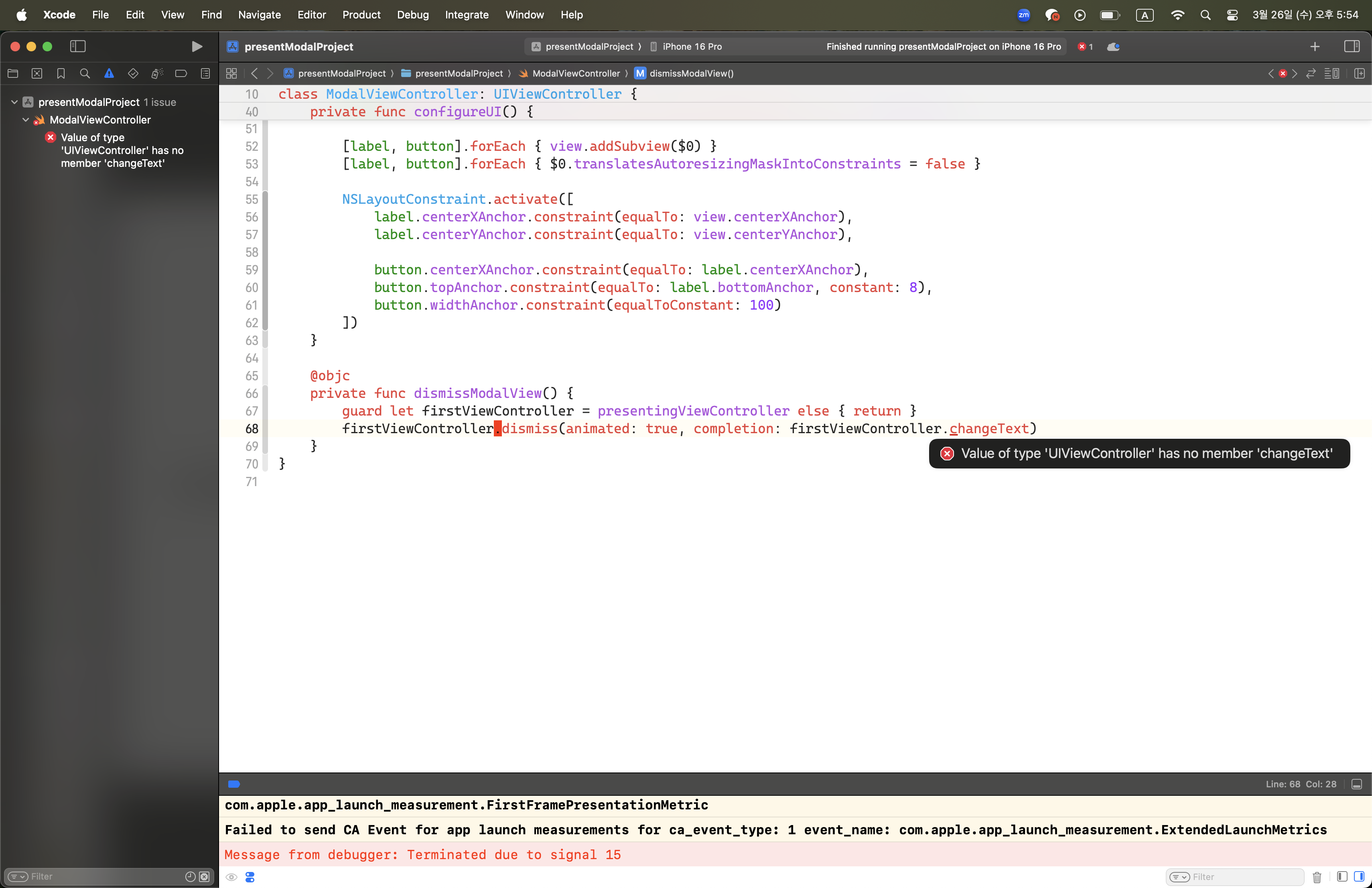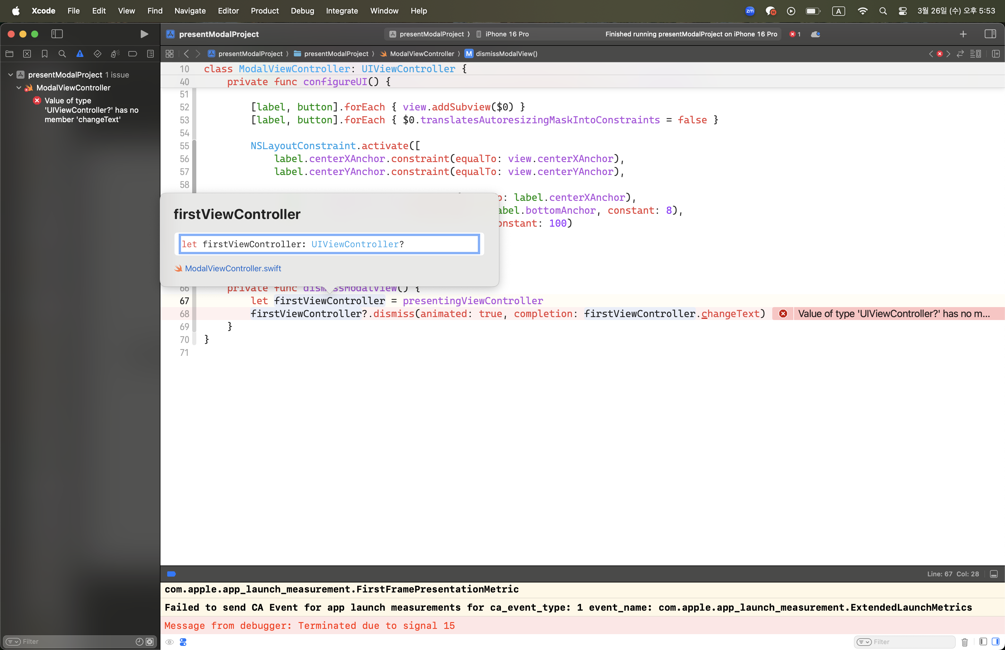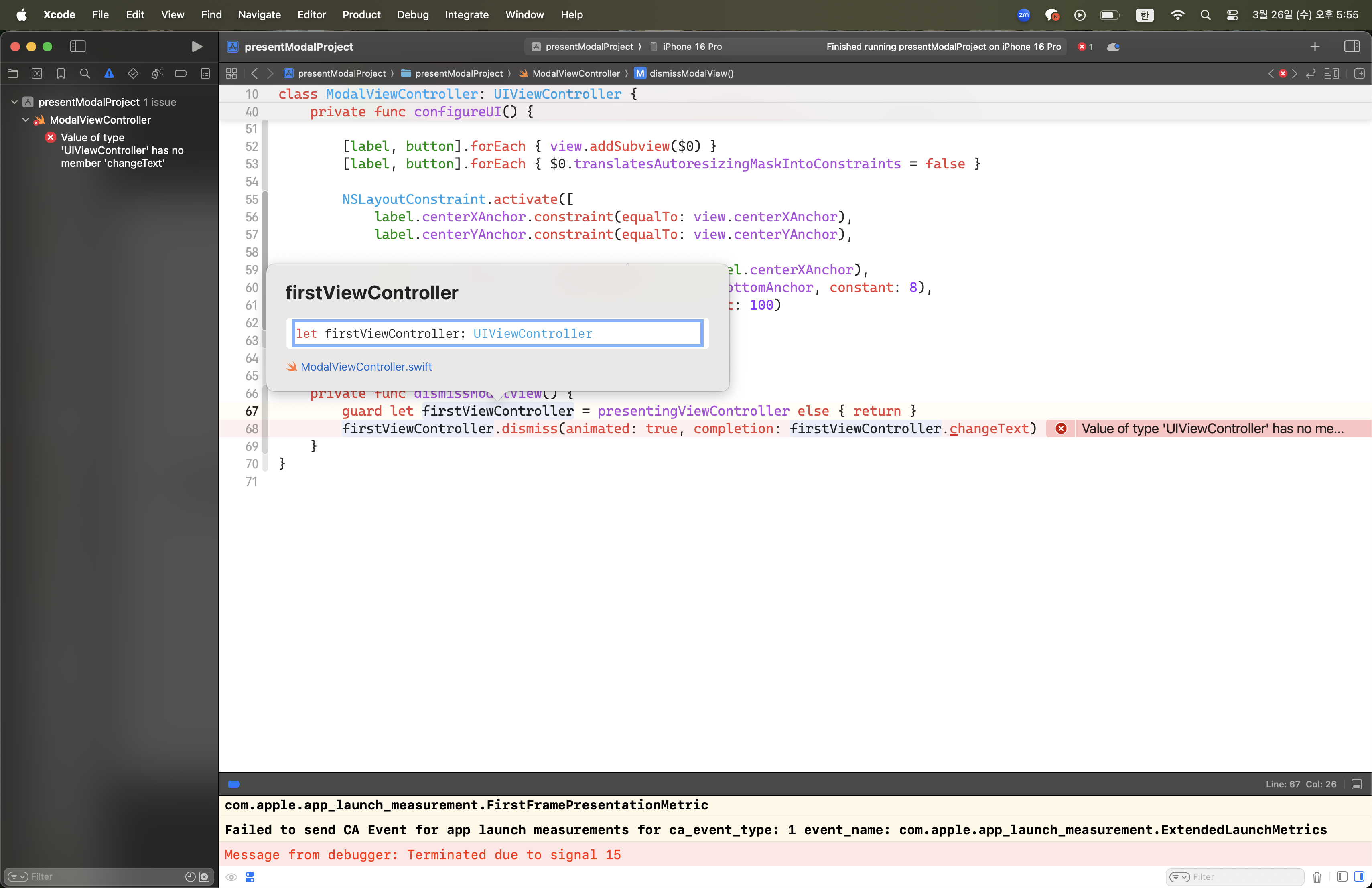 firstViewController에 presentingViewController를 넣어줬는데 왜 안될까?