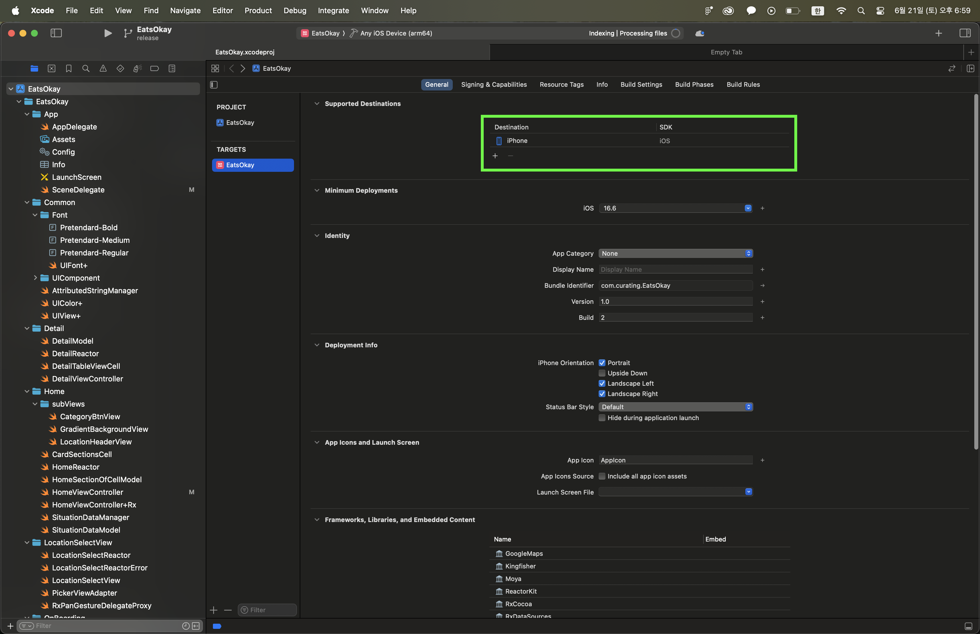 혹시나, iPhone에서만 사용할 앱이라면, 프로젝트 세팅을 미리 바꿔주는 것이 좋다
