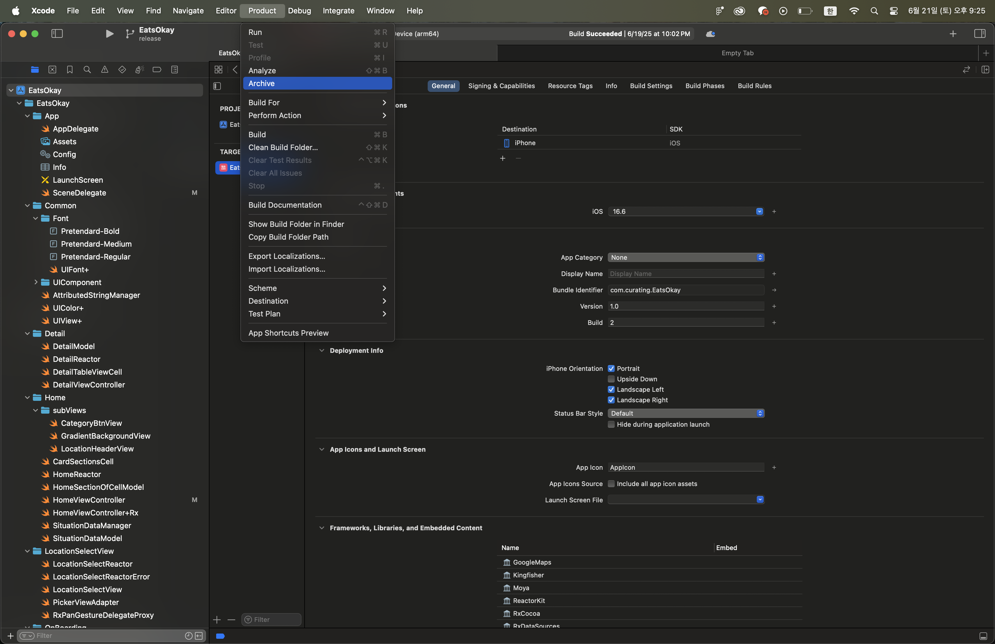이후 Product - Archive를 누르면
