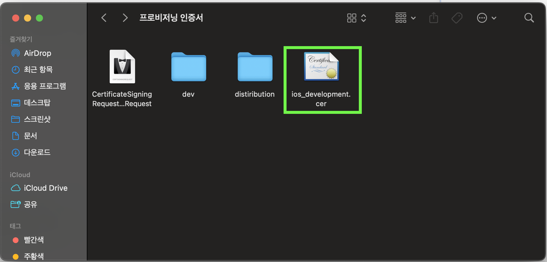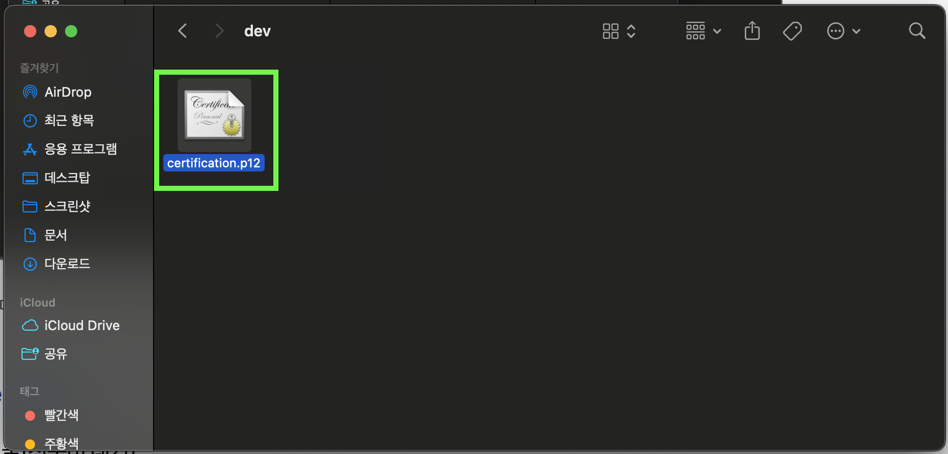 이 파일을 더블클릭하면, 키체인에 등록이 된다