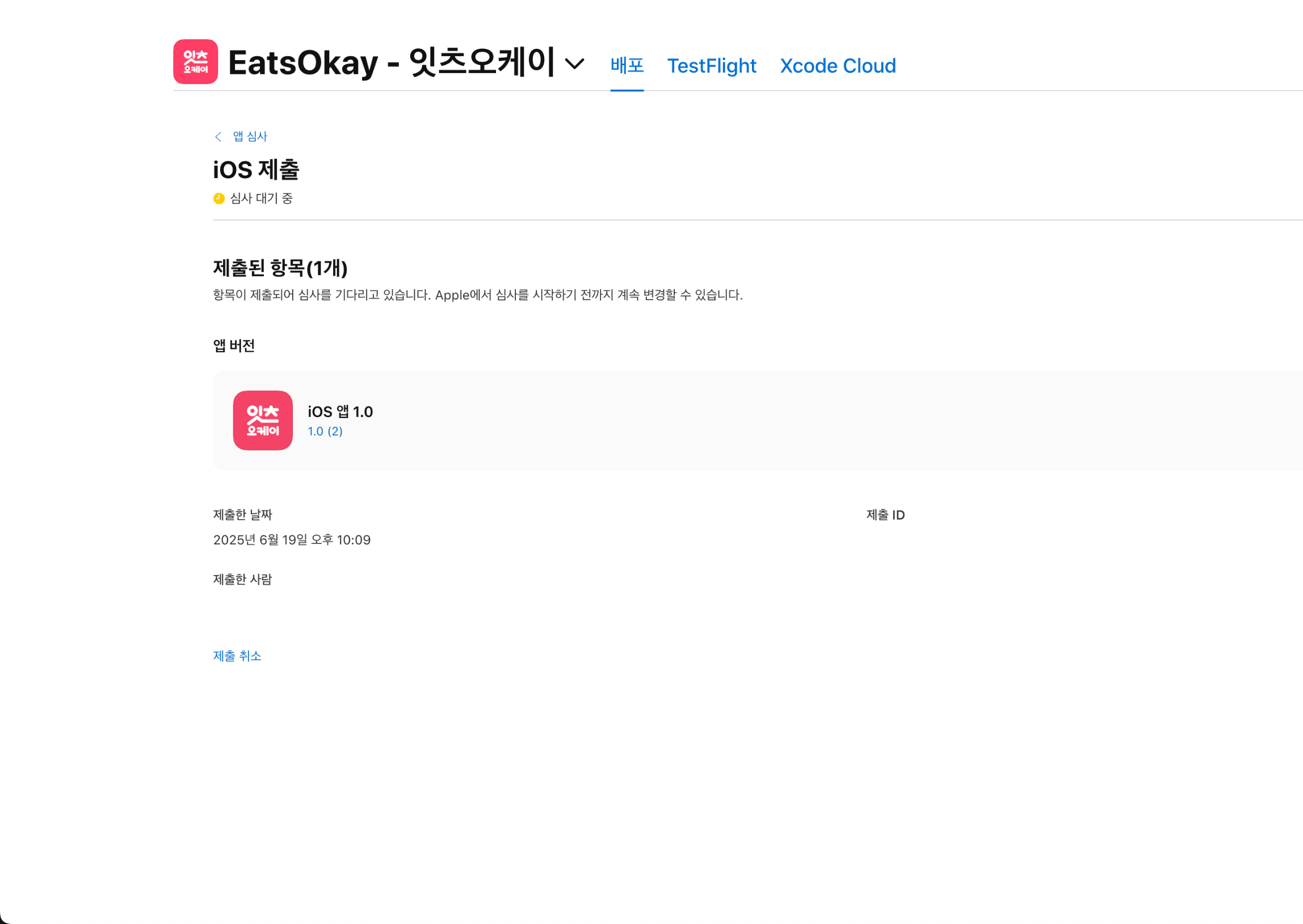 다시 AppstoreConnect로 돌아가서