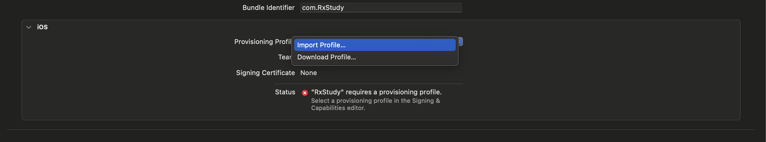 import Porfile을 클릭해서 프로비저닝 파일 추가