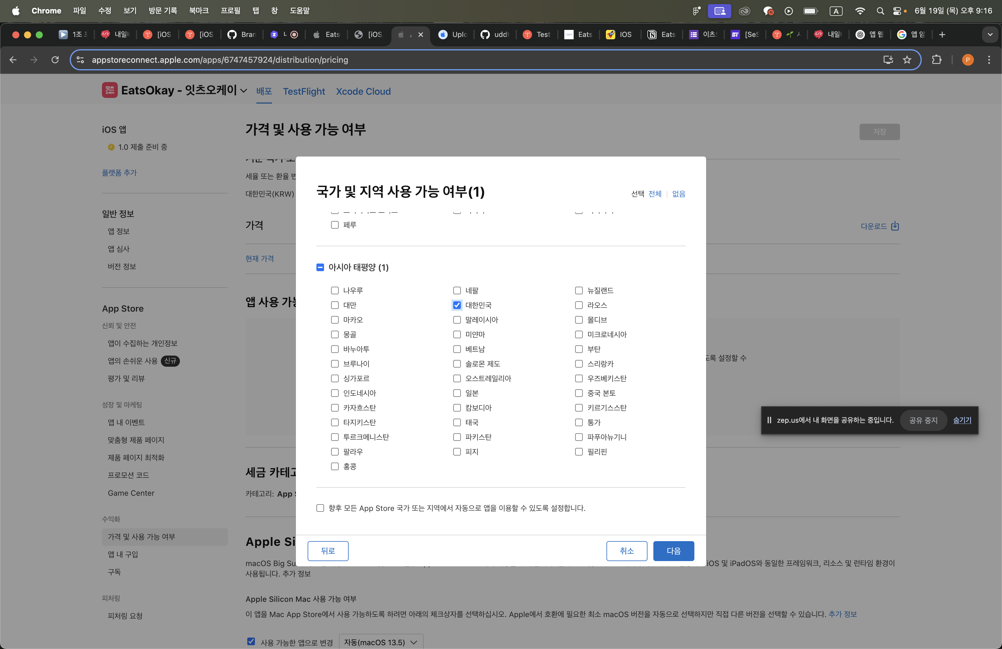 ⎮ AppStore Connect : 가격 및 사용 가능 여부 설정
