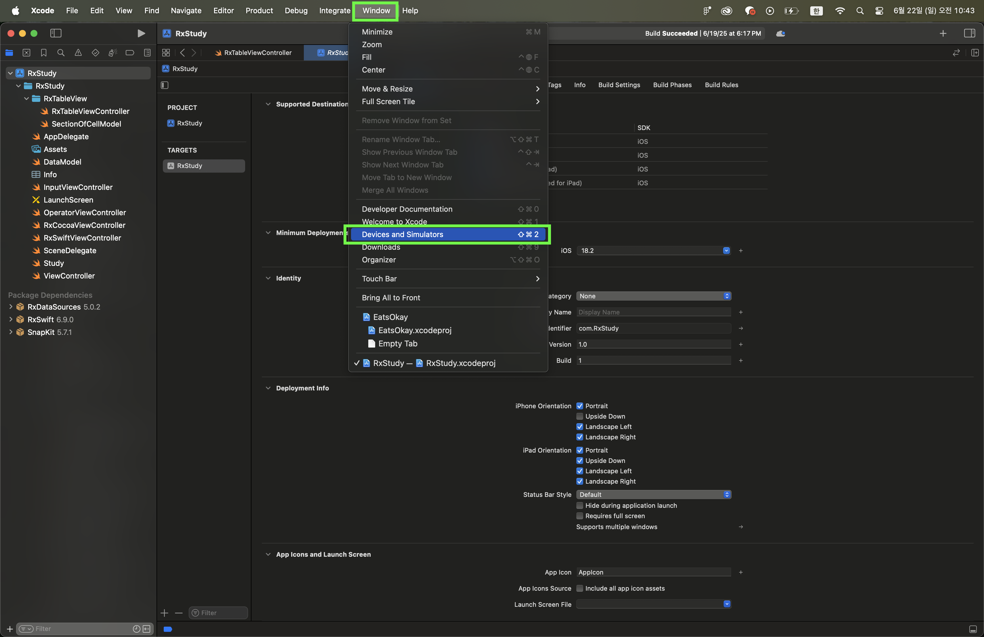 2. Window - Devices and Simulators 클릭