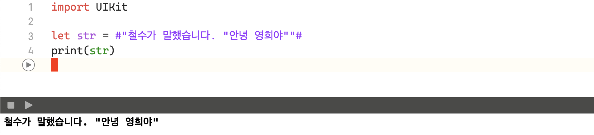 let str = #"철수가 말했습니다. "안녕 영희야""#
