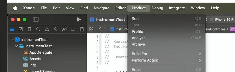 Xcode → Product → Profile (⌘ + I) 경로로 들어가면 템플릿이 나옵니다