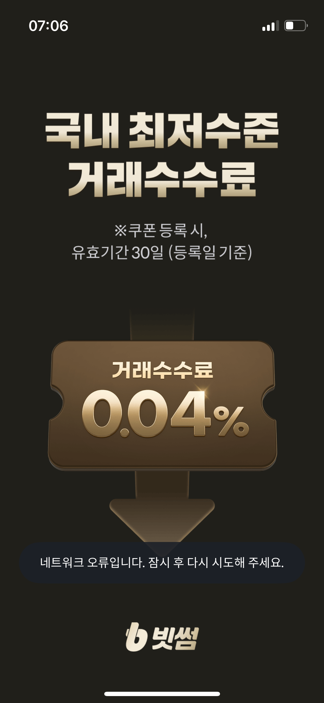 빗썸 : 약 5초 뒤 토스트 메시지