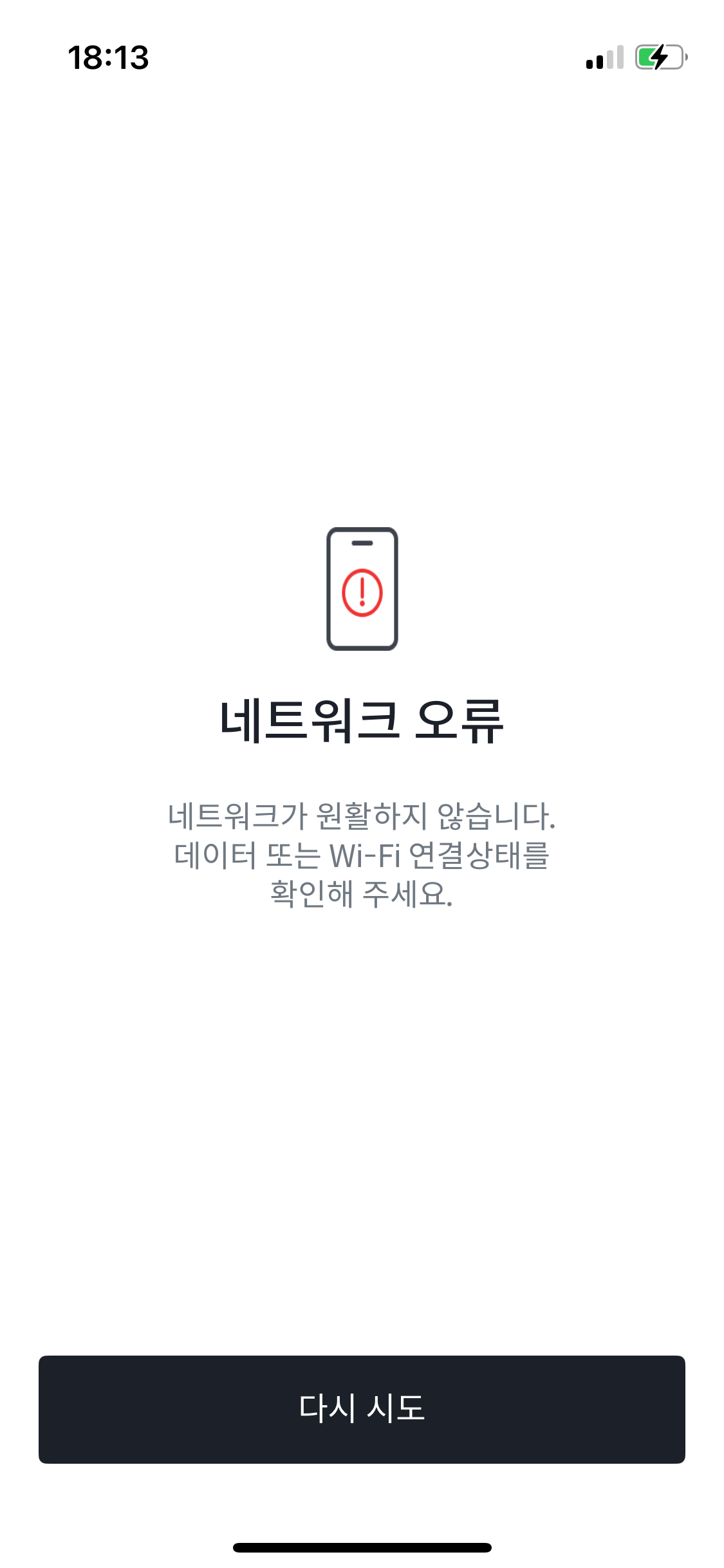 어떤 앱은 2초만에 알럿을 띄우기도하고, 어떤 앱은 재시도 View를 제공합니다