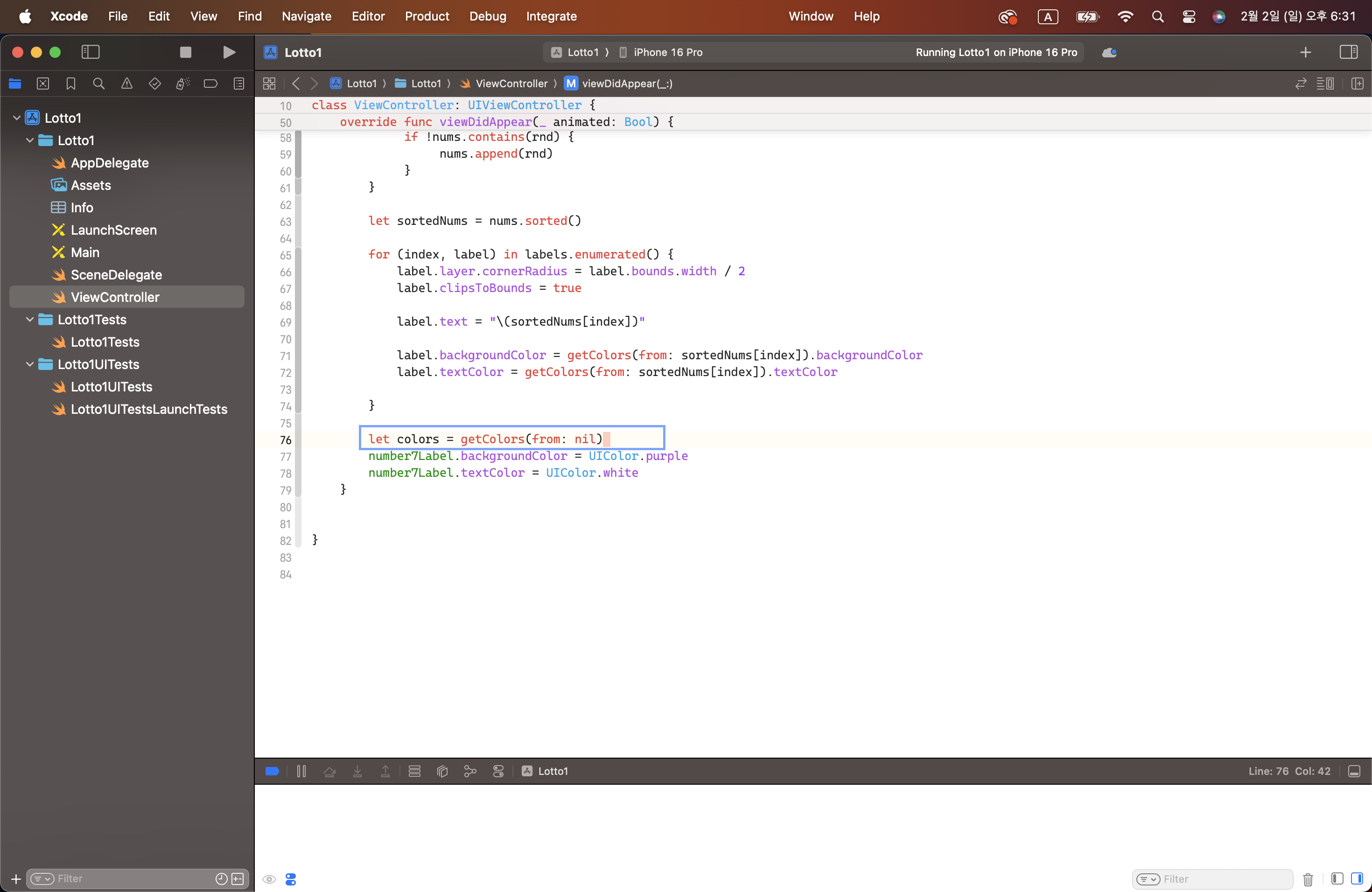 | 27. 스위프트 기초 문법[로또(6) - 정렬과 회전] (1) | 2025.02.02 |