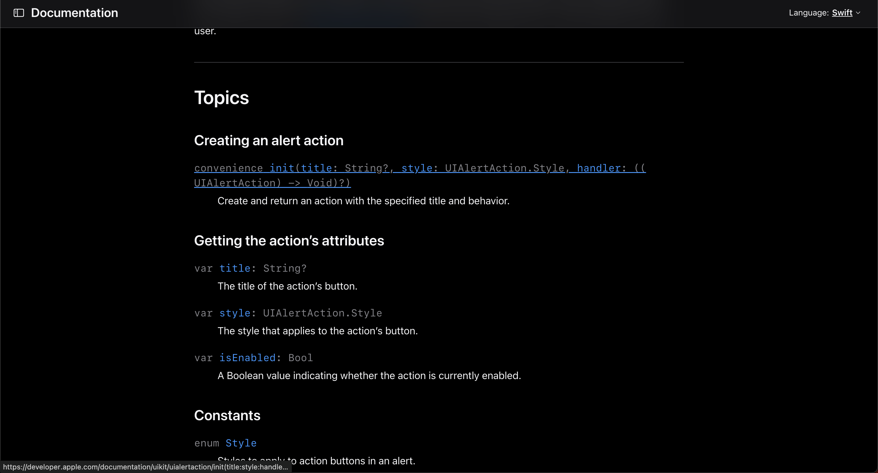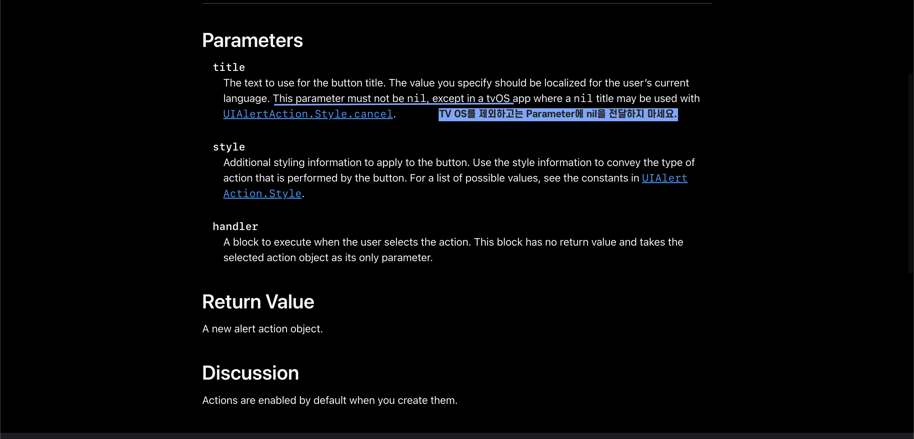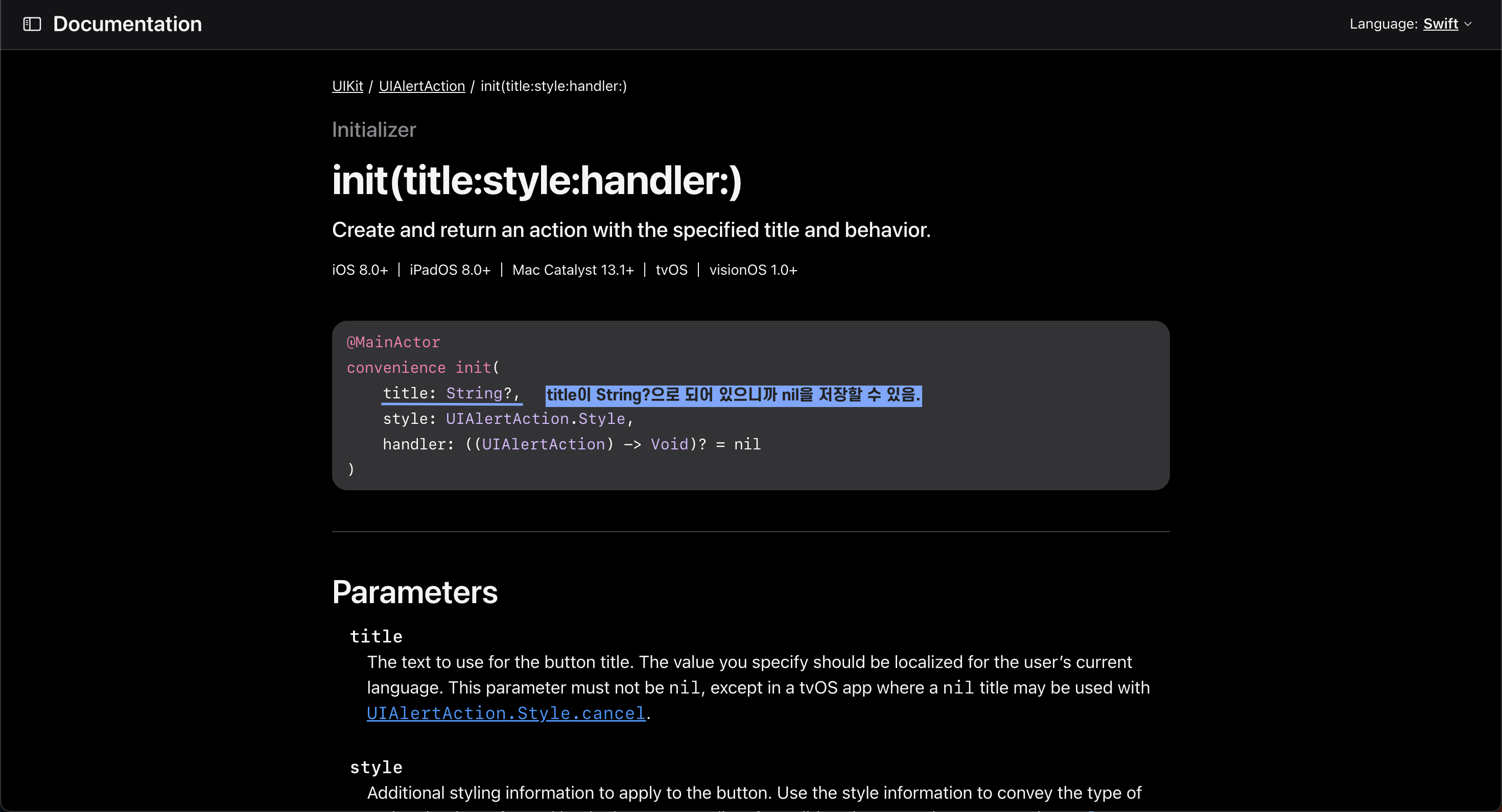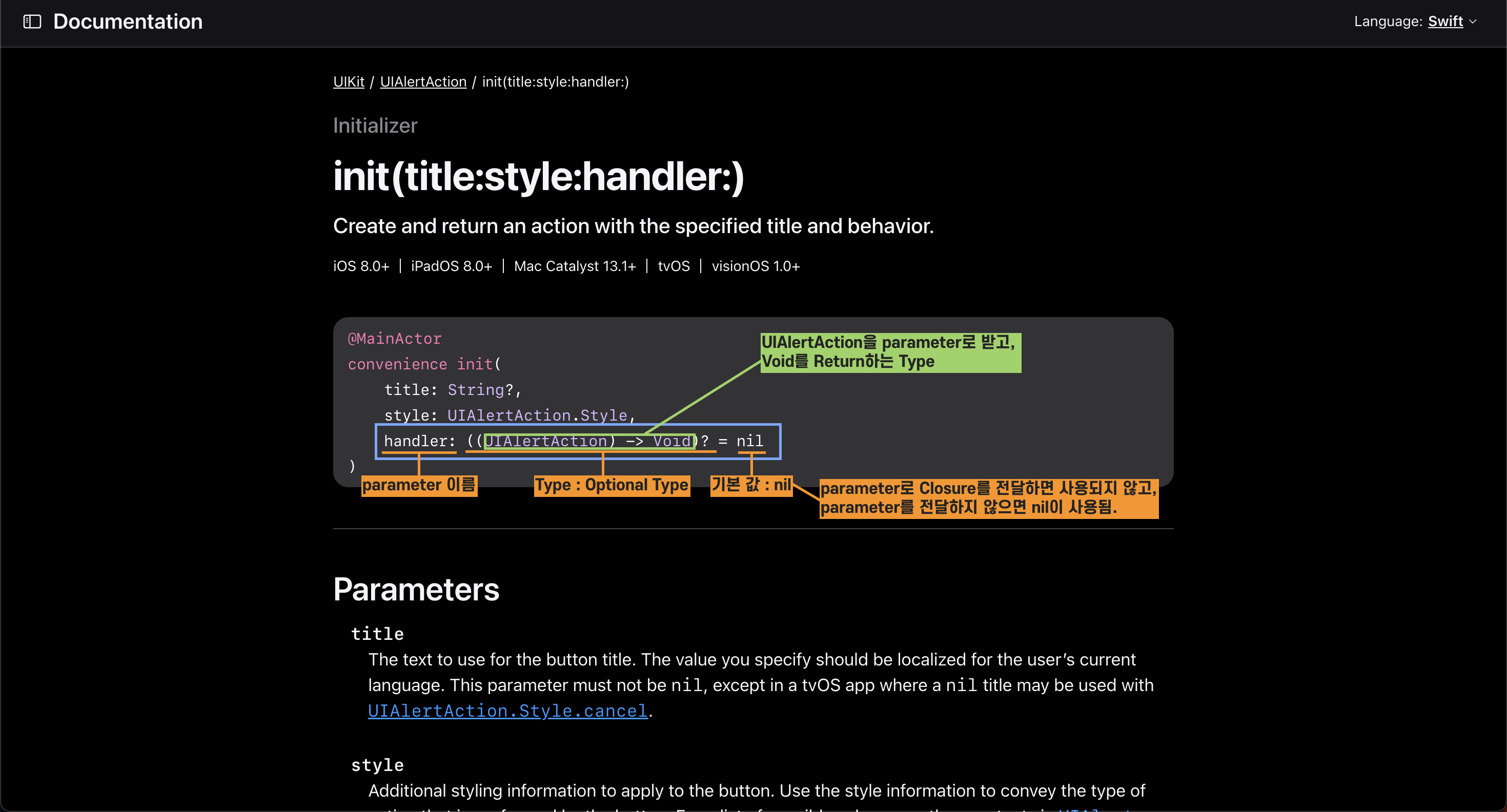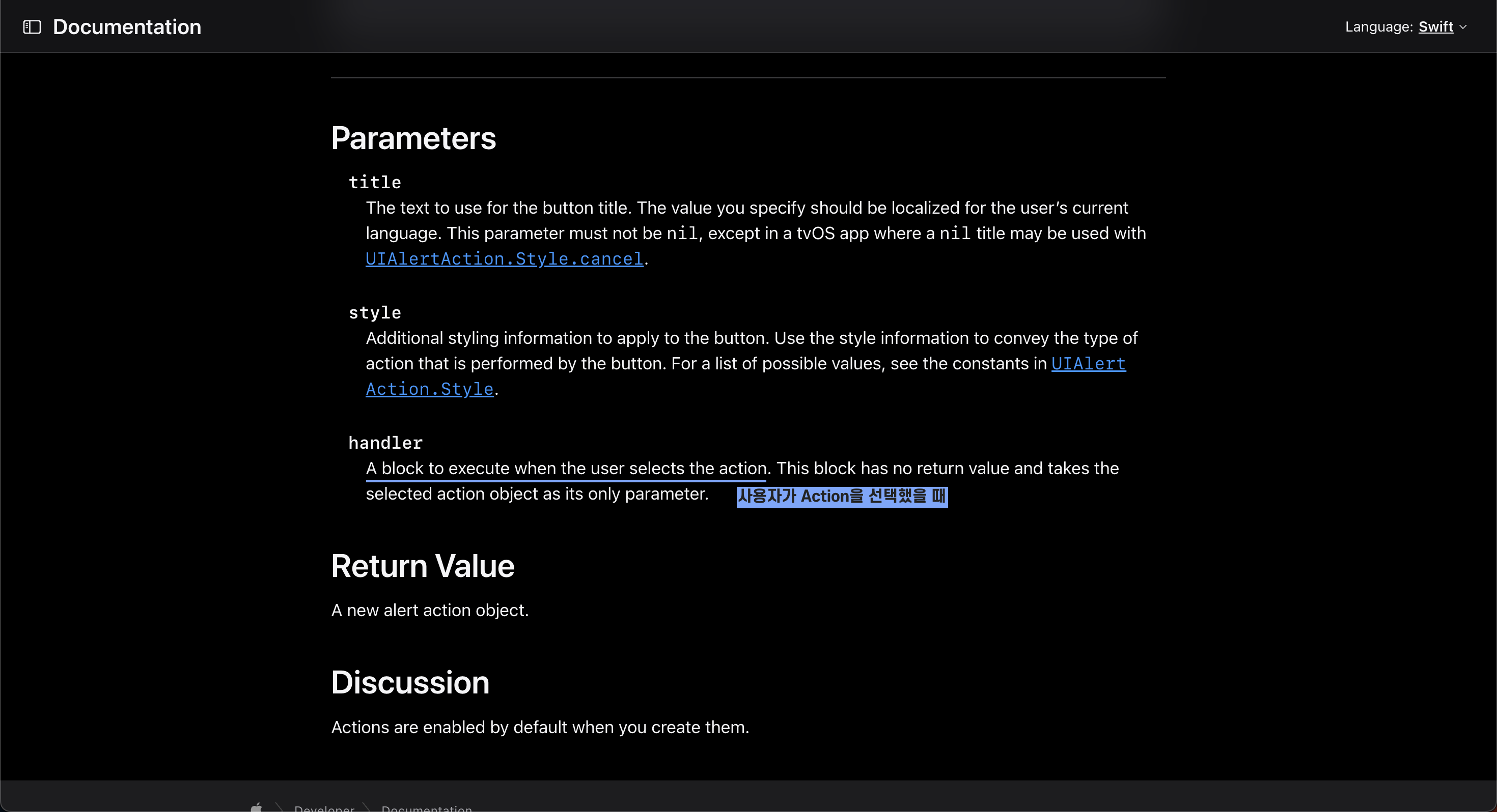 1. Apple Developer 확인 (ex: UIAlertAction)