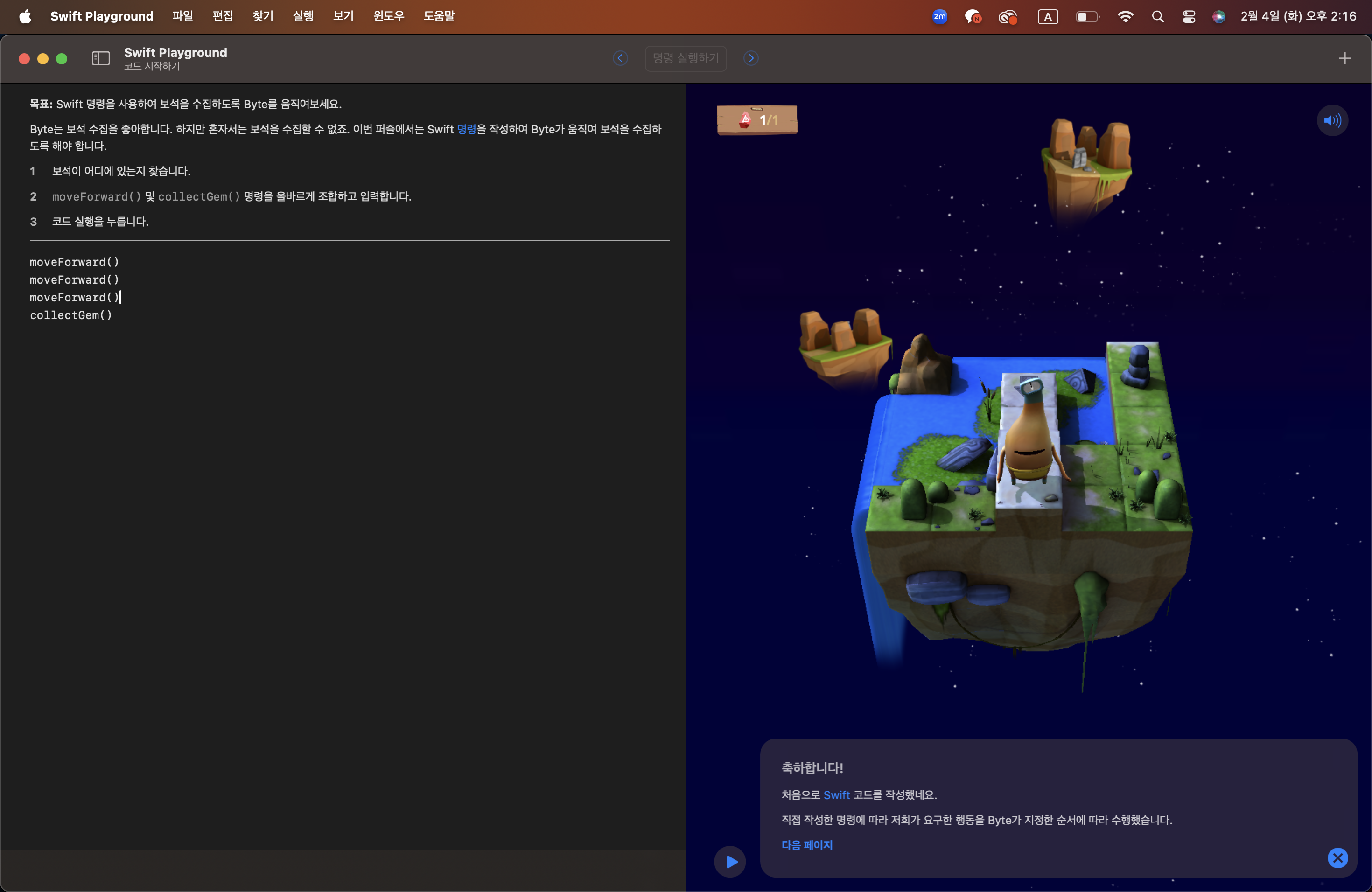 3. Swift PlayGrounds에서는 가이드를 따라 코딩을 할 수 있음