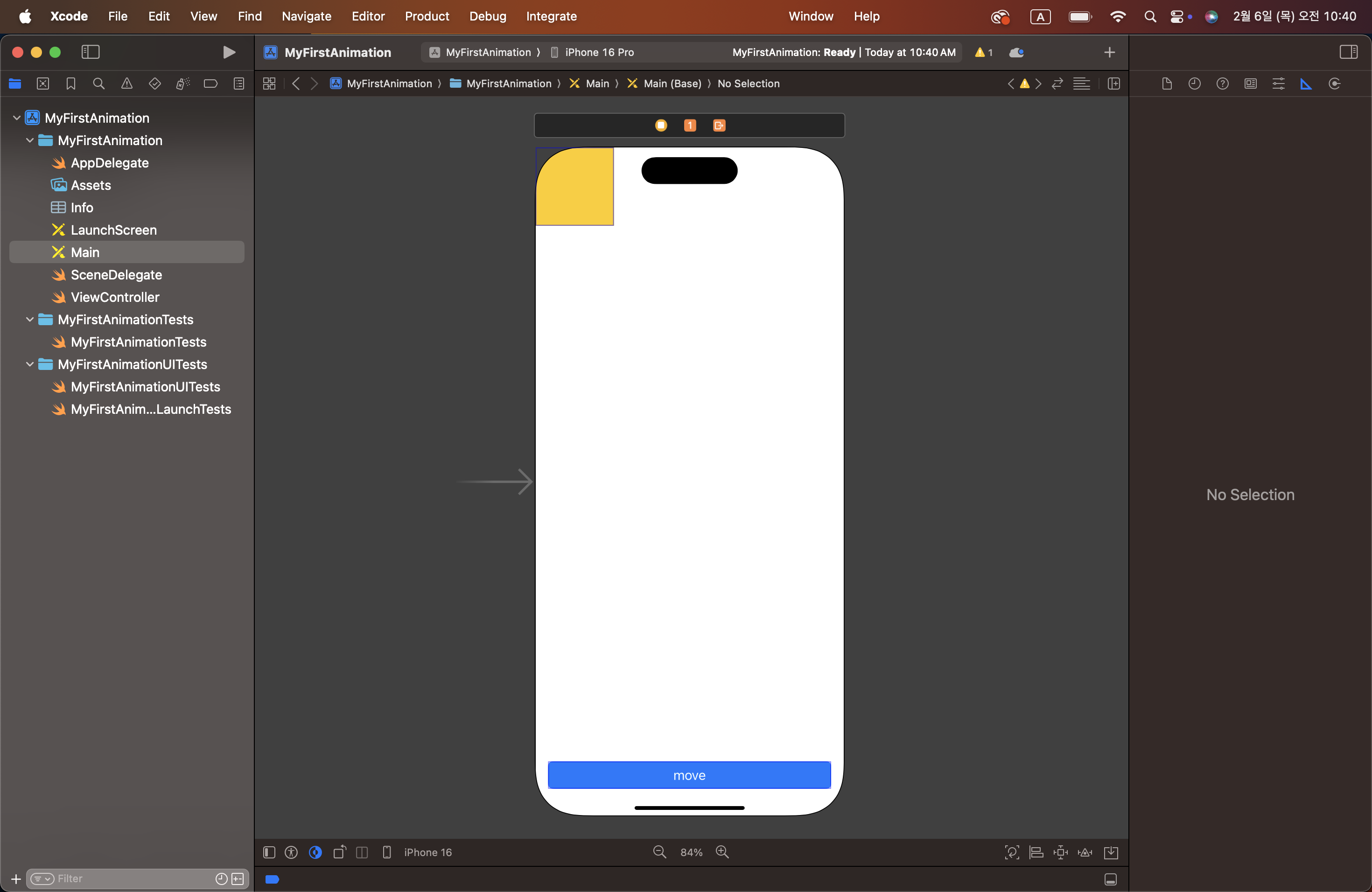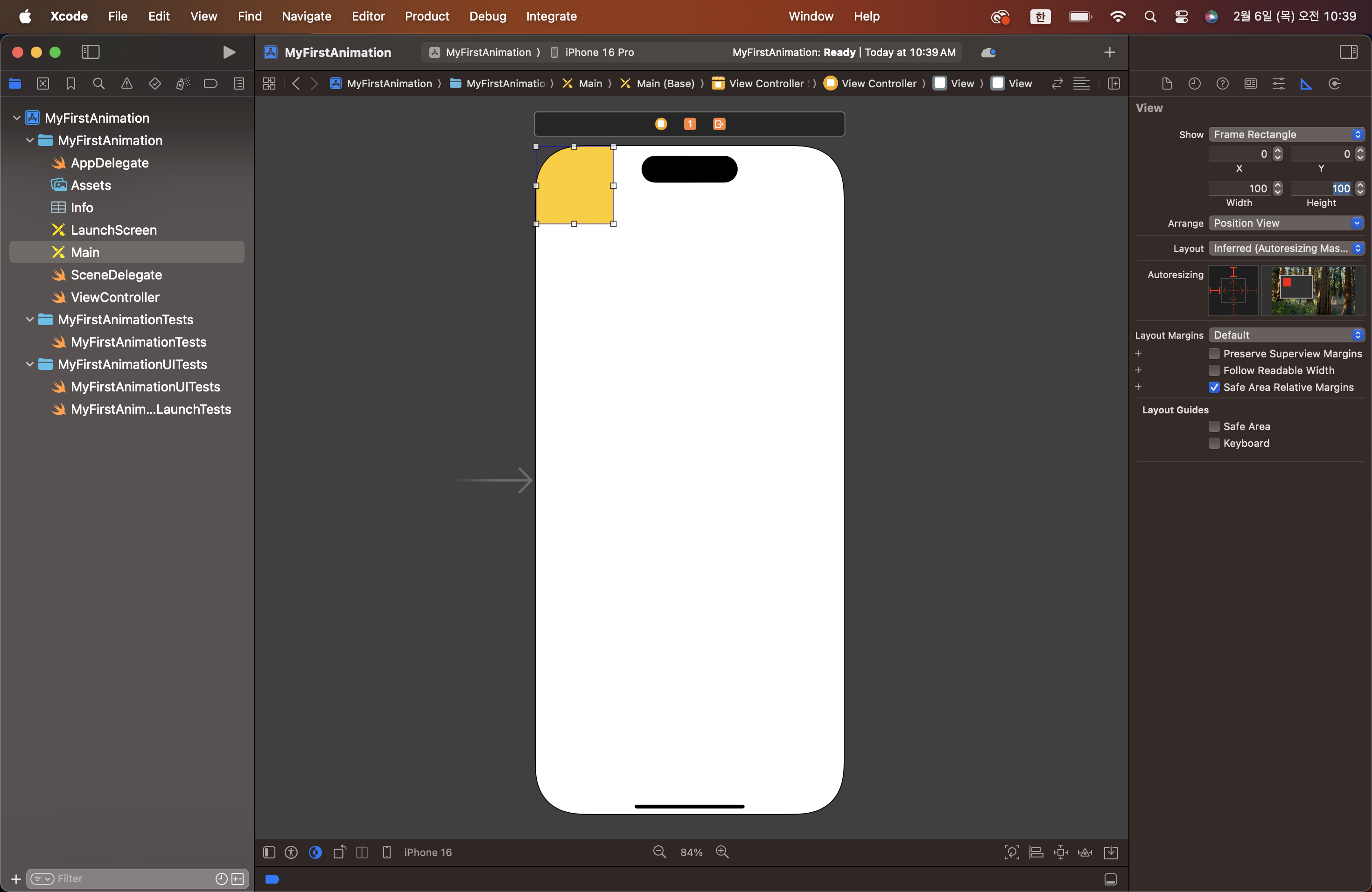 1. 새로운 프로젝트 생성 -MyFirstAnimation