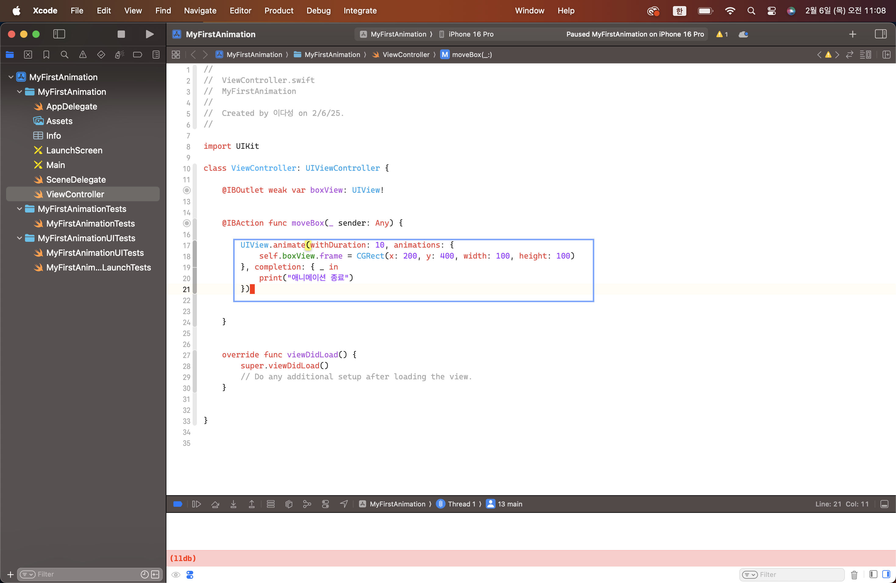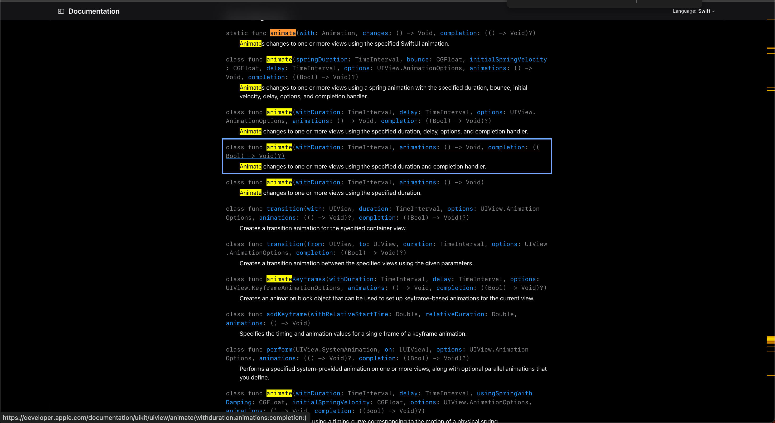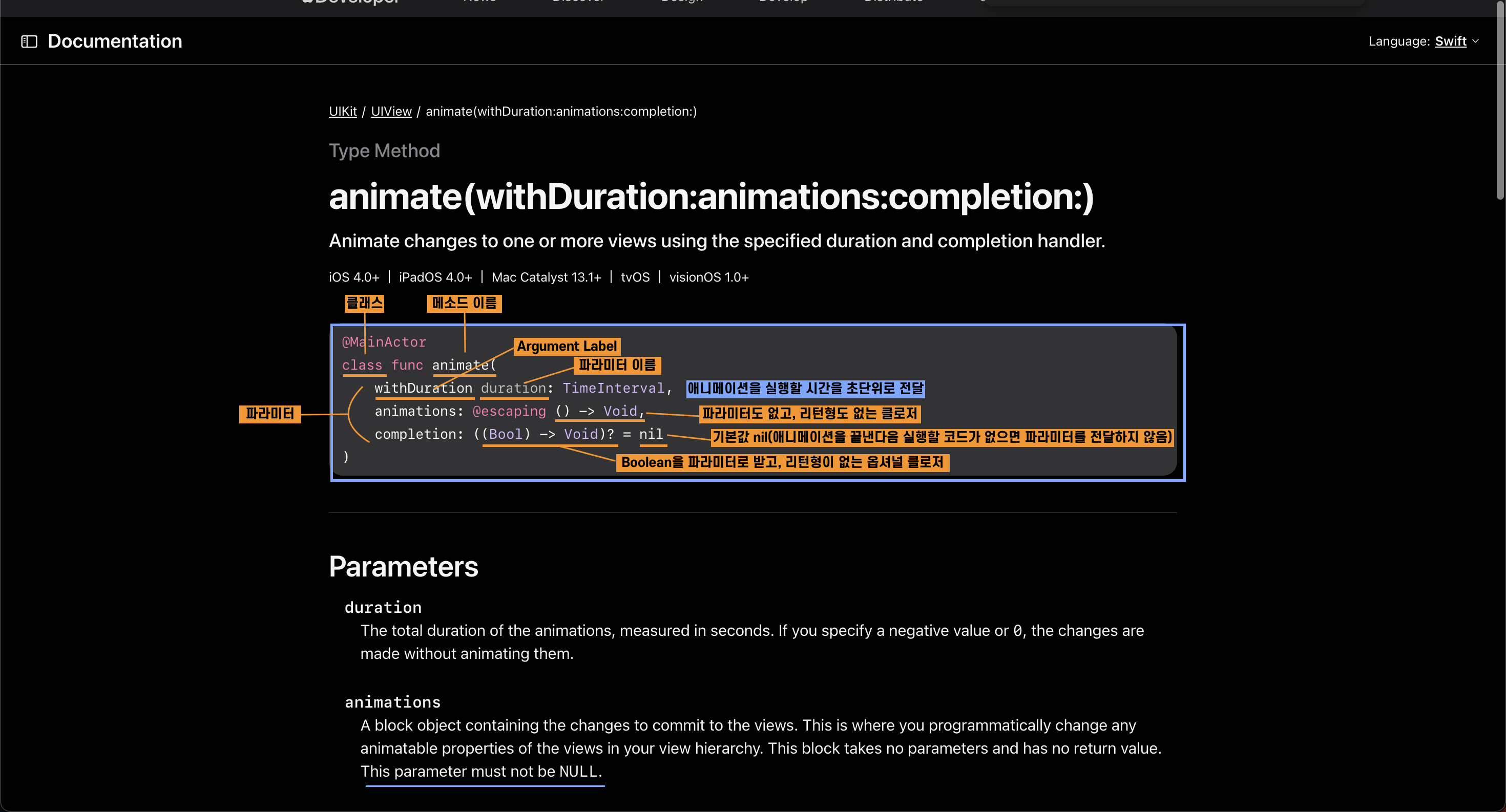 10. UIView에서 animate 메소드 찾기