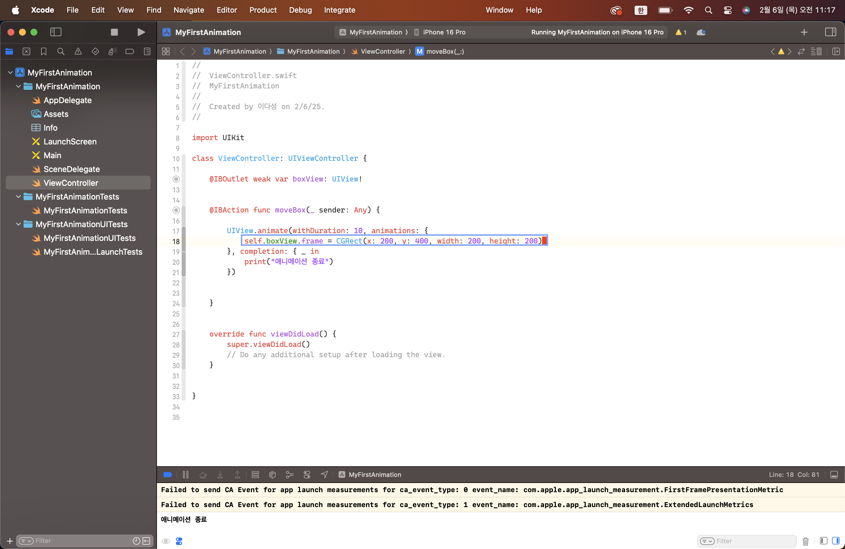 12. boxView.frame 앞에 self.을 붙여 컴파일 에러 해결