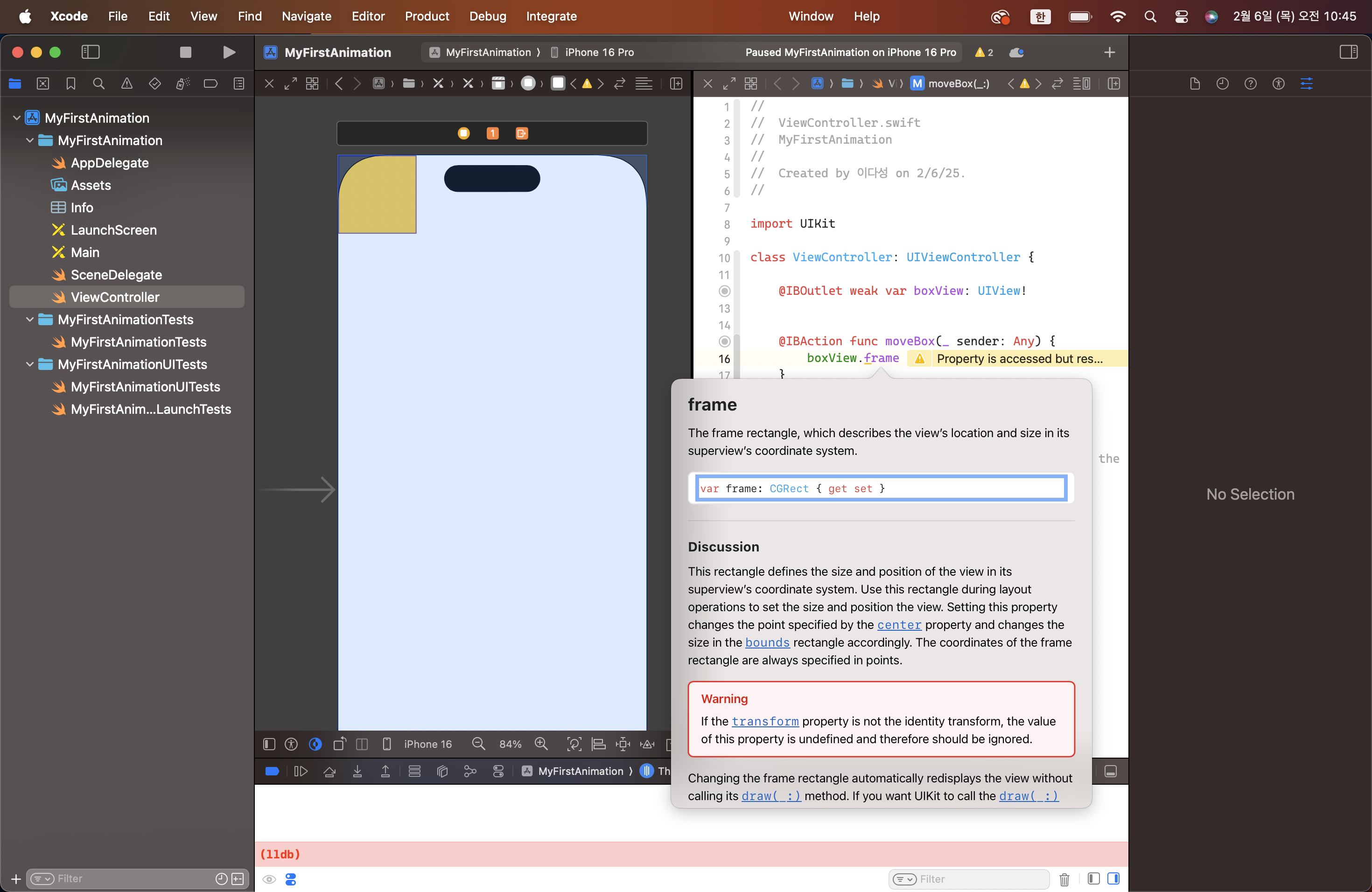 9. CGRect Type에 위치를 입력하면 위치 설정 가능, 크기를 입력하면 크기 설정 가능.