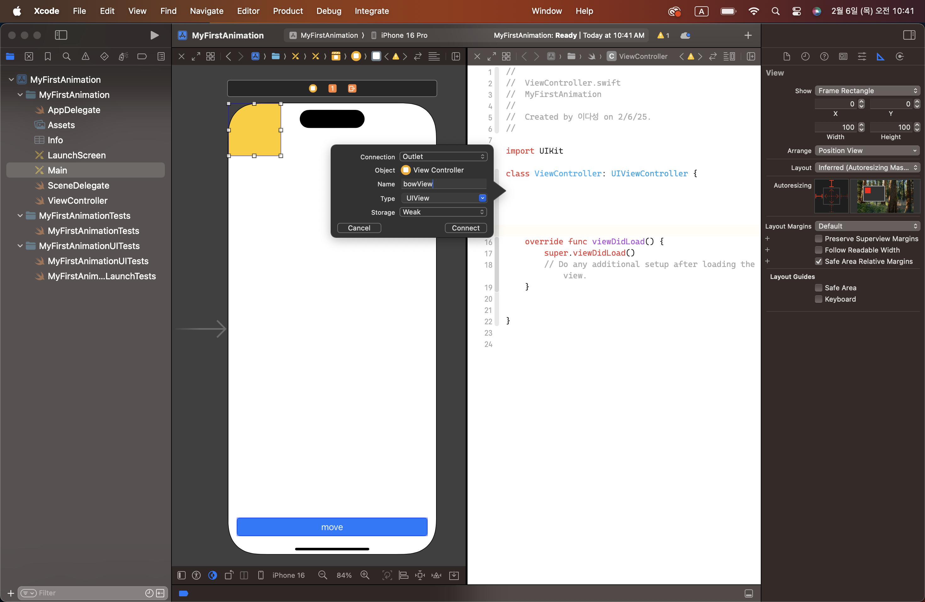 6. ViewController에서 UIView를 Outlet으로 연결